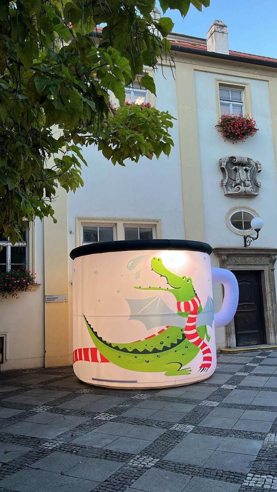 The original inflatable Dragon Enamel Mug photo point was created for us by Kubíček Factory, a Brno-based company that has made the Czech Republic famous around the world with its hot air balloons. As well as this, the company creates custom-made inflatables, ranging from advertising installations and urban decorations to artistic and scenic-graphic projects. Every item is crafted in Brno with a focus on quality, attention to detail, and innovative designs that can transform any space into an unforgettable setting.