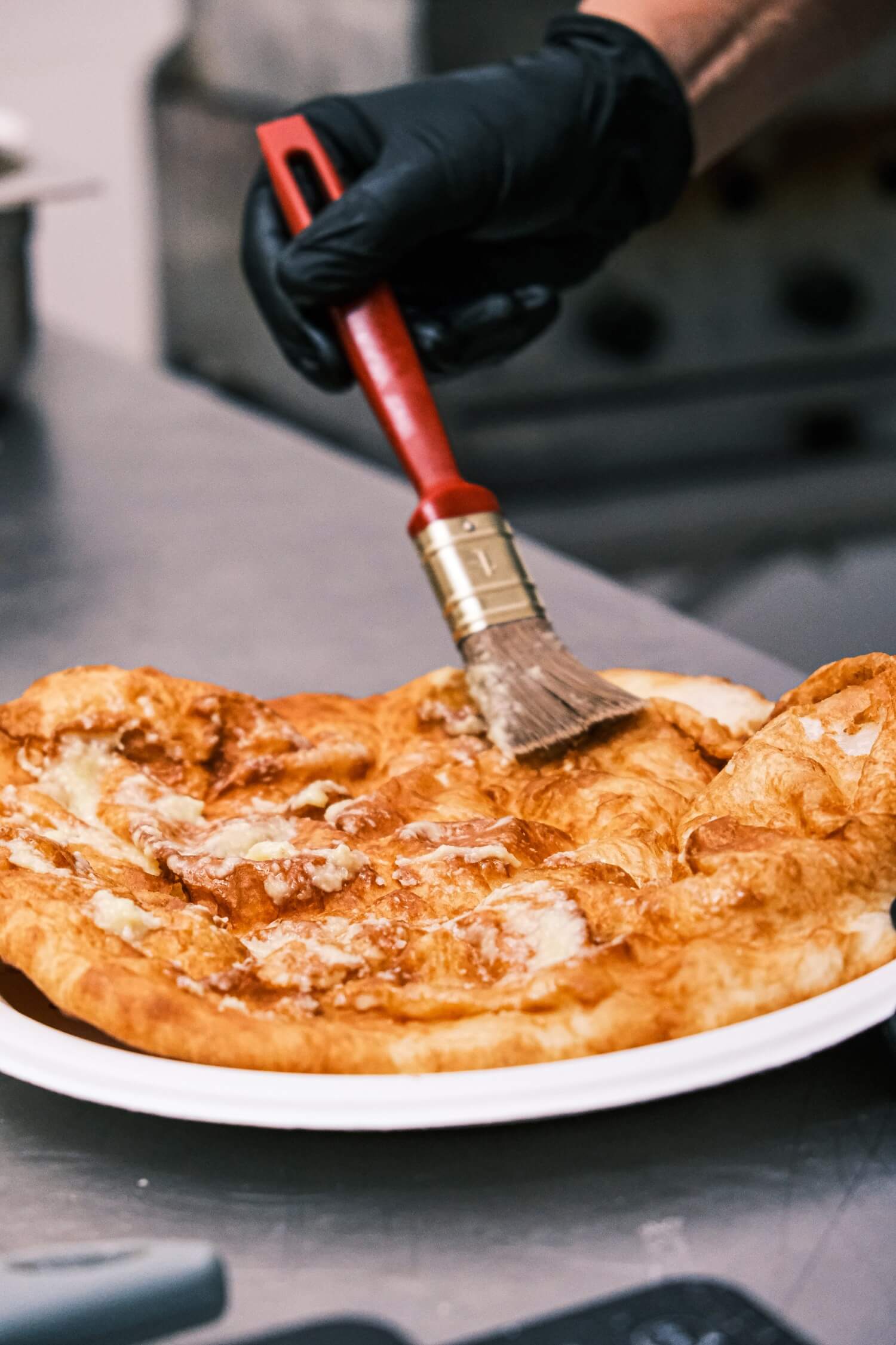 Děláme poctivé langoše z vlastního čerstvého těsta – každá várka vzniká ručně přímo u nás a smažíme ji v extra horkém oleji, takže langoš není mastný a může si ho dát opravdu každý. Těsto rozvalujeme natenko, takže je velký, ale lehký. Znáte nás z festivalů jako Rock for People nebo Majáles – teď se poprvé objevíme i na vánočních trzích v Brně. Kdo si u nás nedal langoš, jako by tu nebyl!