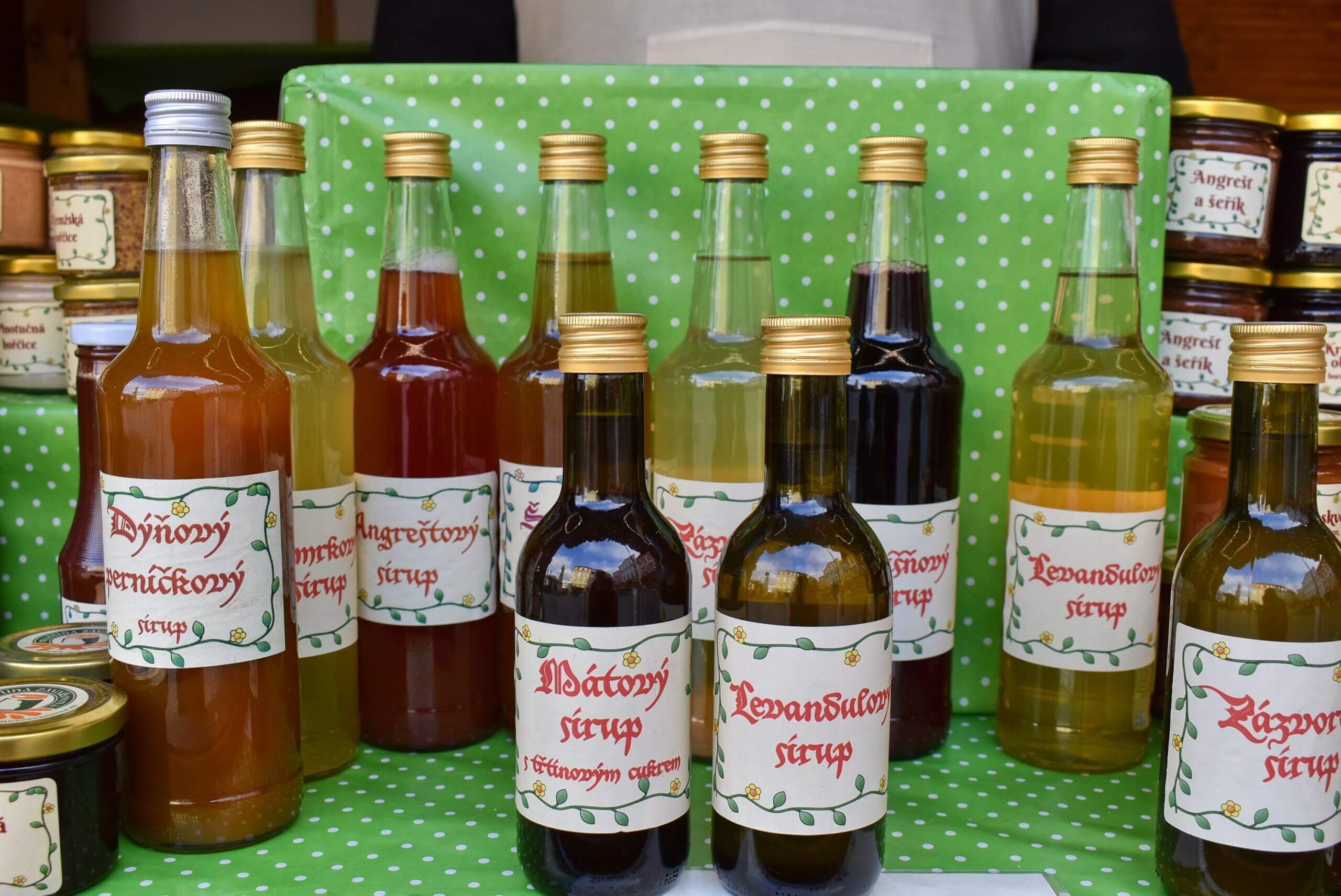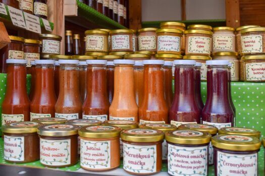 Velký výběr klasických i netradičních džemů a zavařenin, pěkně ostrých hořčic, pikantních omáček ke grilování a různých specialit k sýrům, paštikám.