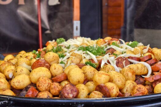 Speciality z grilu-steaky, špízy, klobásy, žebírka, kolena + příloha chleba, halušky, brambory s uzeninou a cibulí, buřty na pivu, moravský kotlík masová směs