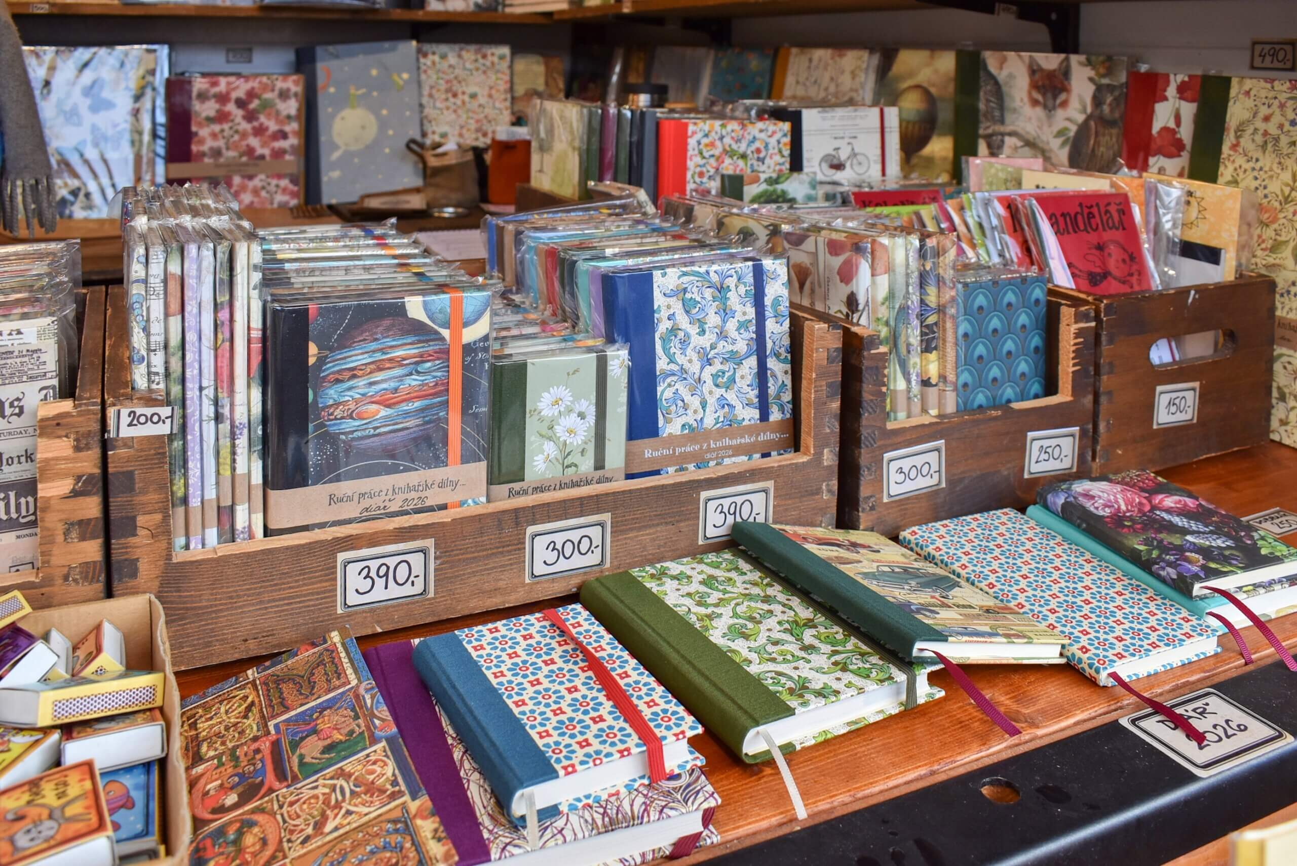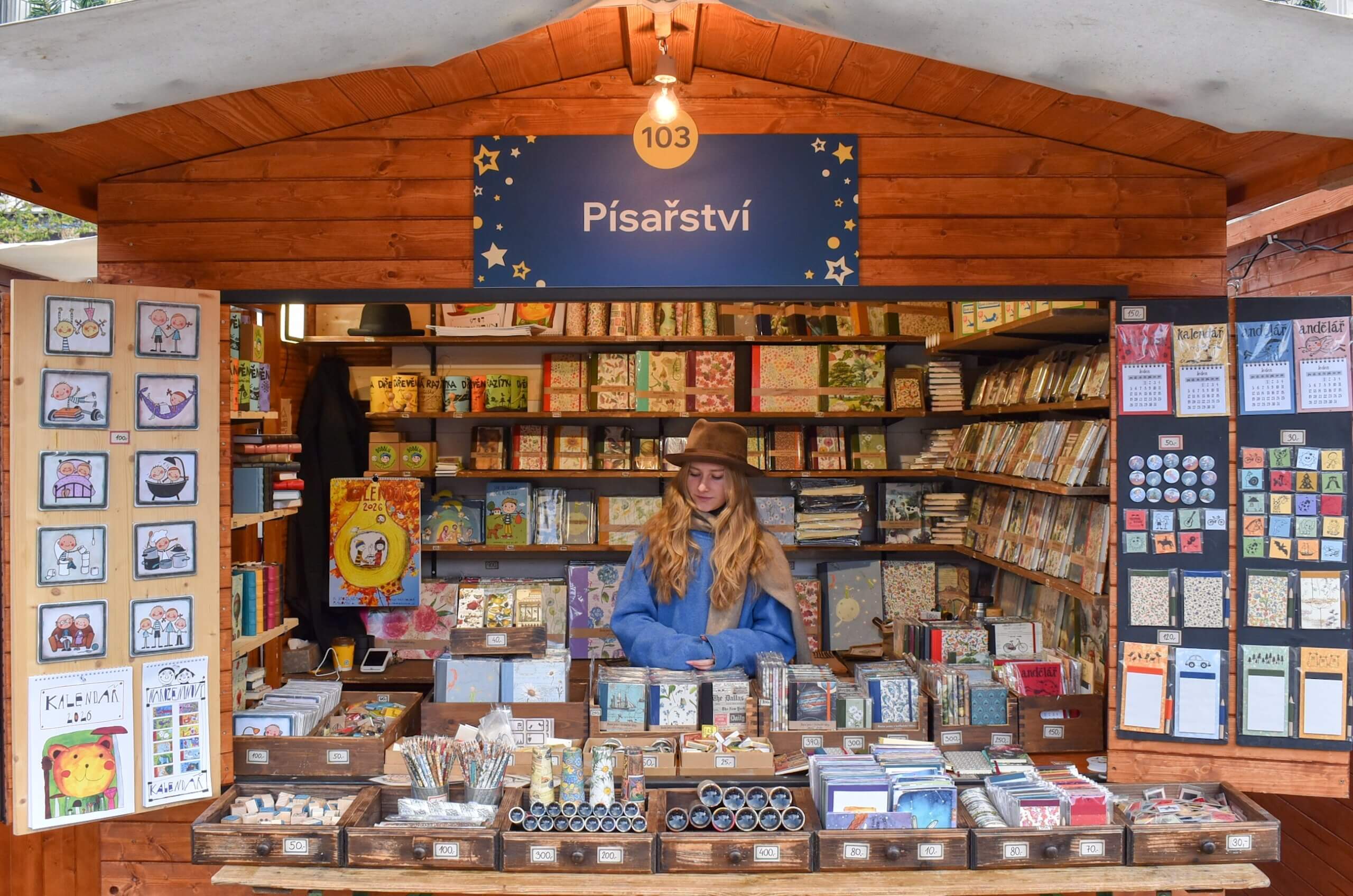 Prodej starých sešitů, diářů, speciálních zápisníků, dřevěných rámů a rámečků, starodávných per, dárkových sad, pečetidel a pečetních vosků. 103PísařstvíZelný trh