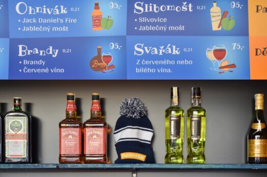 Alkoholické i nealkoholické nápoje včetně svařených nápojů.