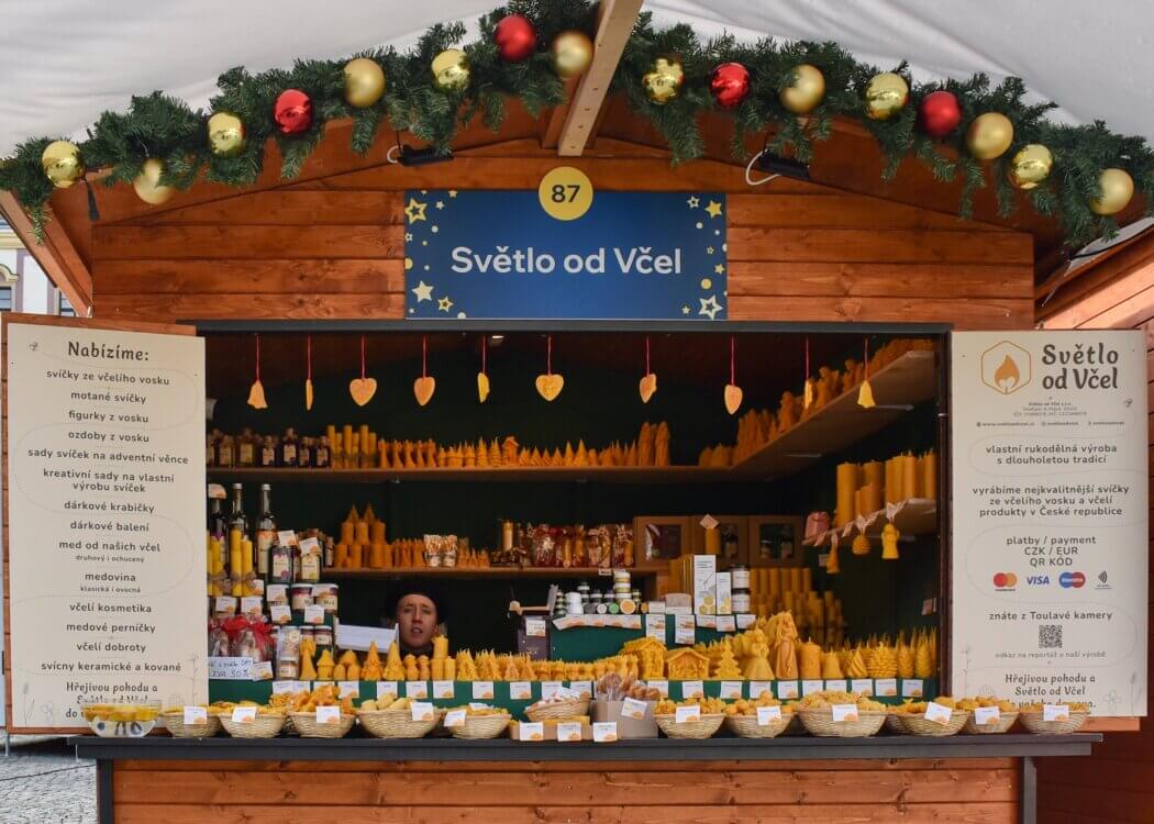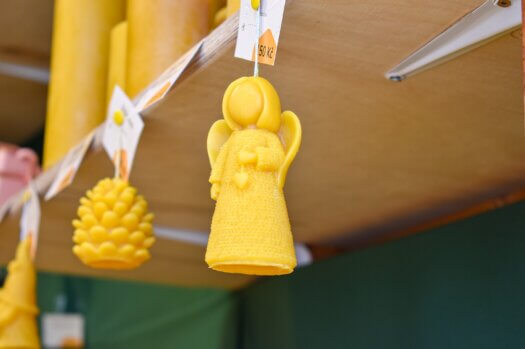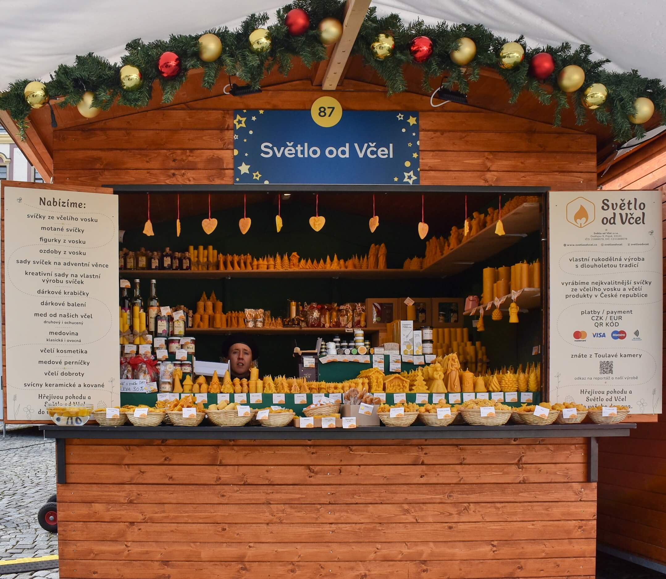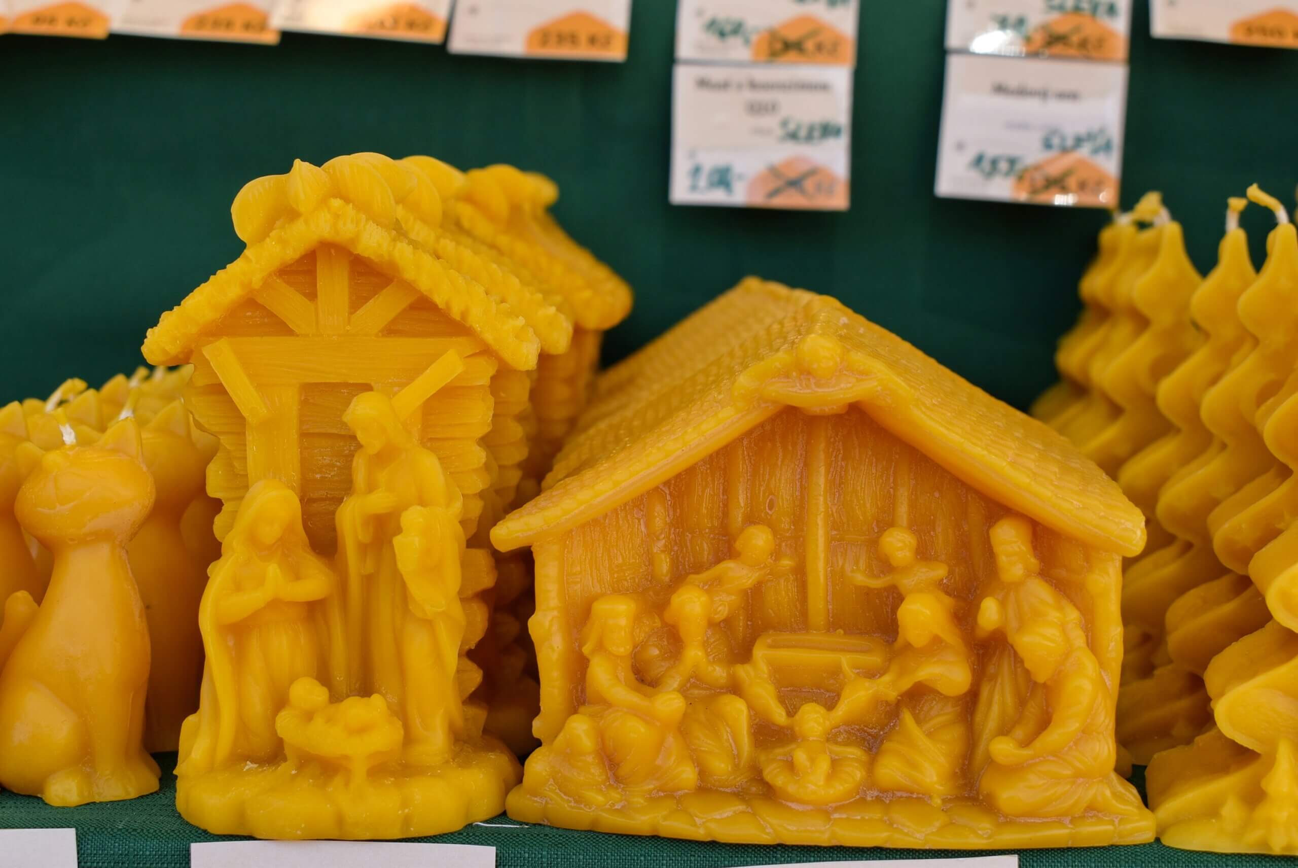 Svíčky z včelího vosku, sady svíček na adventní věnce, kreativní sady s návodem na výrobu vlastních svíček, vánoční ozdoby z včelího vosku, sady figurek do betlému z včelího vosku, včelí med (více druhů), léčivá včelí kosmetika a propolis, domácí lahvová medovina, dekorativní předměty z přírodnin (větvičky, chvojí a ovoce) se svíčkami a ozdobami z vosku, svícny.