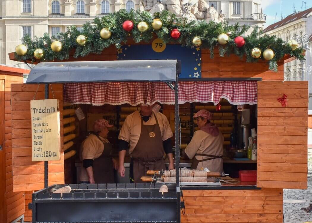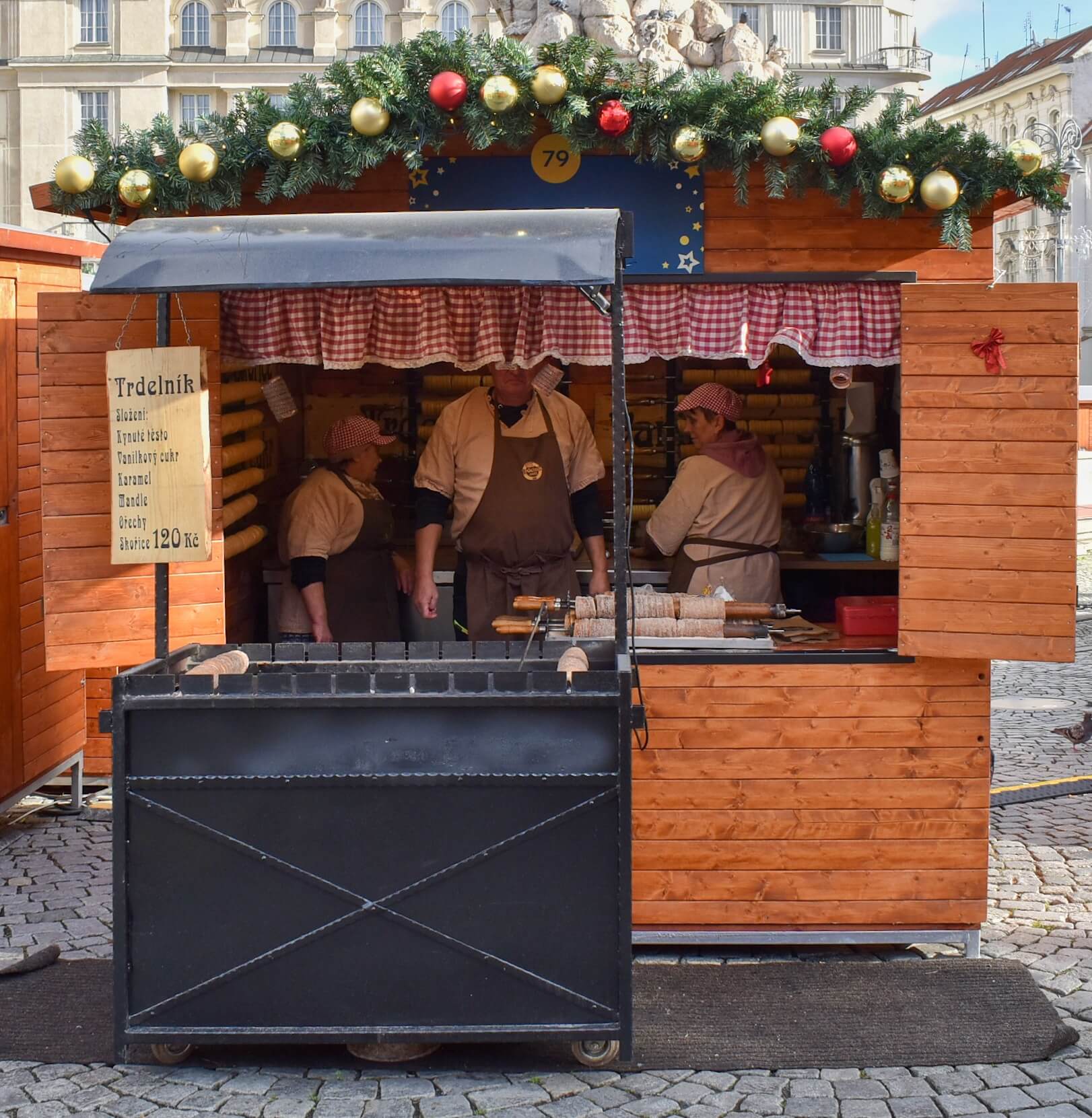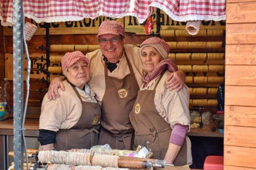 Trdelníky tradičně připravované na dřevěném uhlí.