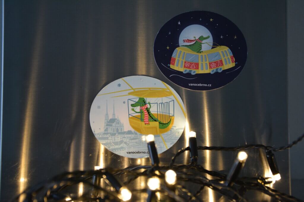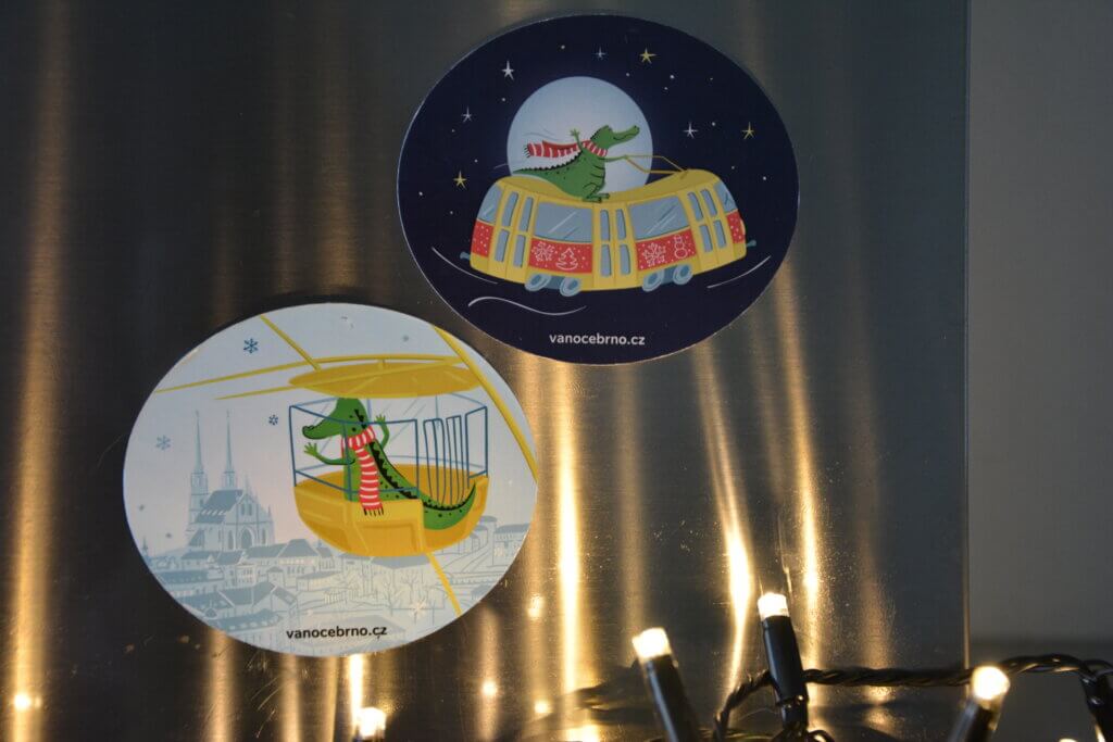 Z letošních vánočních trhů z Brna si můžete přinést opět i magnetku s krokodýlem z Brna! Kde jinde by měl být na magnetce vyobrazen než ve vyhlídkovém kole, které je neodmyslitelnou součástí brněnských Vánoc.