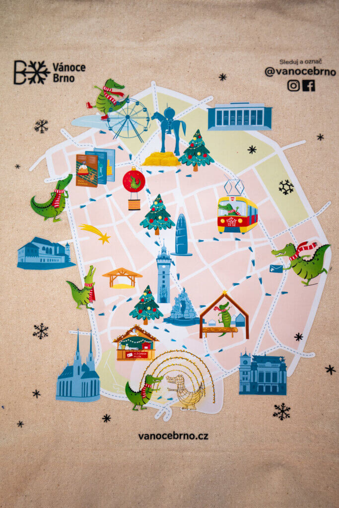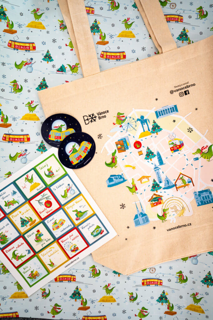Vánoční taška je plná vzpomínek! Když s ní vyrazíte na nákupy, připomenete si krásné zážitky z návštěvy vánočních atrakcí, které jsou na ní vyobrazeny. Je ušita z kvalitní pevné látky přírodní barvy, které se hodí ke každému oblečení. Cena: 100 Kč
